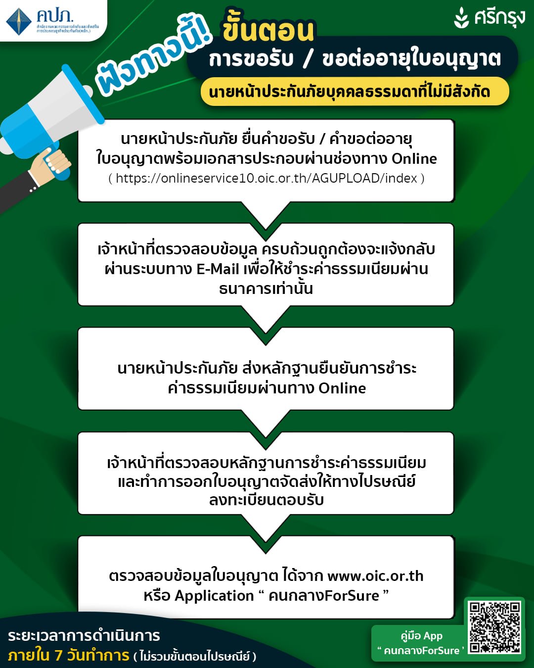 เนื่องด้วยช่วงนี้ ตามที่มีสถานการณ์การแพร่ระบาดของเชื้อไวรัส (COVID – 19) เพิ่มขึ้นเป็นจำนวนมาก เพื่ออำนวยความสะดวกและป้องกันความเสี่ยงต่อการติดเชื้อ ทางสำนักงาน คปภ. จึงงดให้บริการแบบ Walk-In แต่พี่ๆ ที่ต้องการขอรับหรือขอต่อใบอนุญาตนายหน้าฯ ยังสามารถยื่นผ่านระบบออนไลน์แทนได้นะ