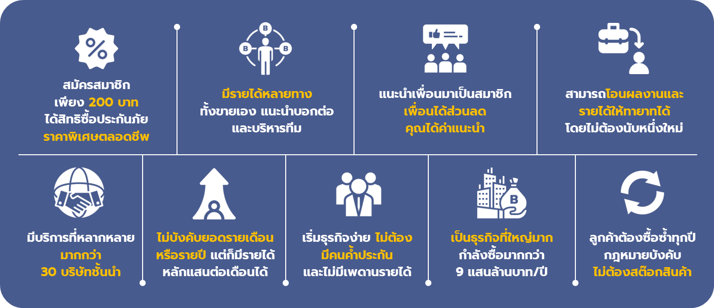 ธุรกิจนี้ขายง่ายเพราะประกันรถยนต์เป็นสิ่งที่รถทุกคันต้องทำตามกฎหมาย เมื่อสะสมฐานลูกค้าและสร้างทีมงานได้ ระบบแนะนำบอกต่อจะช่วยเพิ่ม รายได้นายหน้าประกัน และสร้างความมั่นคงระยะยาวให้คุณได้แบบไร้ขีดจำกัด