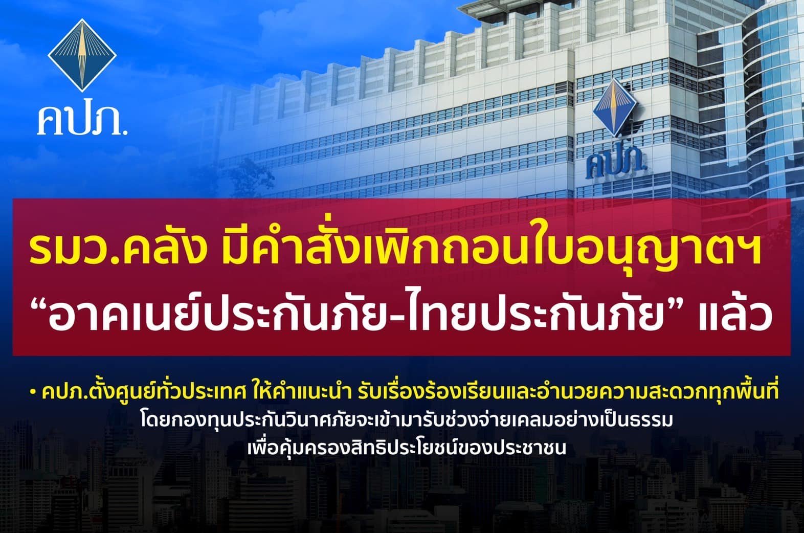จากกรณีที่รมว.คลังมีคำสั่งให้เพิกถอนใบอนุญาต อาคเนย์ประกันภัยและไทยประกันภัย เมื่อวันที่ 1 เมษายน 2565