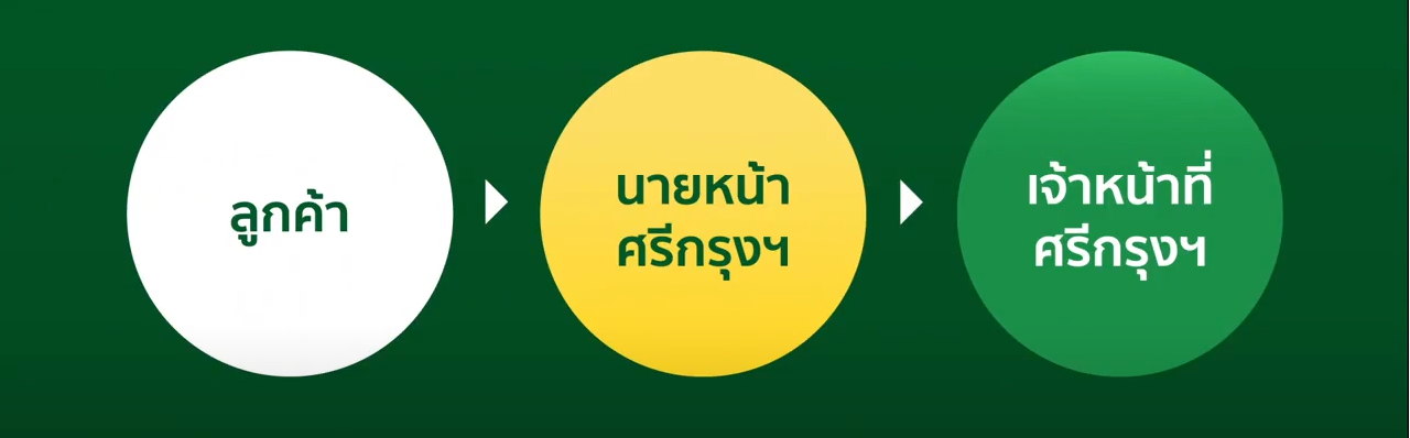 คุณขายให้ลูกค้า -> ลูกค้าโอนเงินเข้าบริษัท -> บริษัทส่งกรมธรรม์ให้ลูกค้า -> บริษัทศรีกรุงโบรคเกอร์โอนเงินค่าคอมให้คุณ