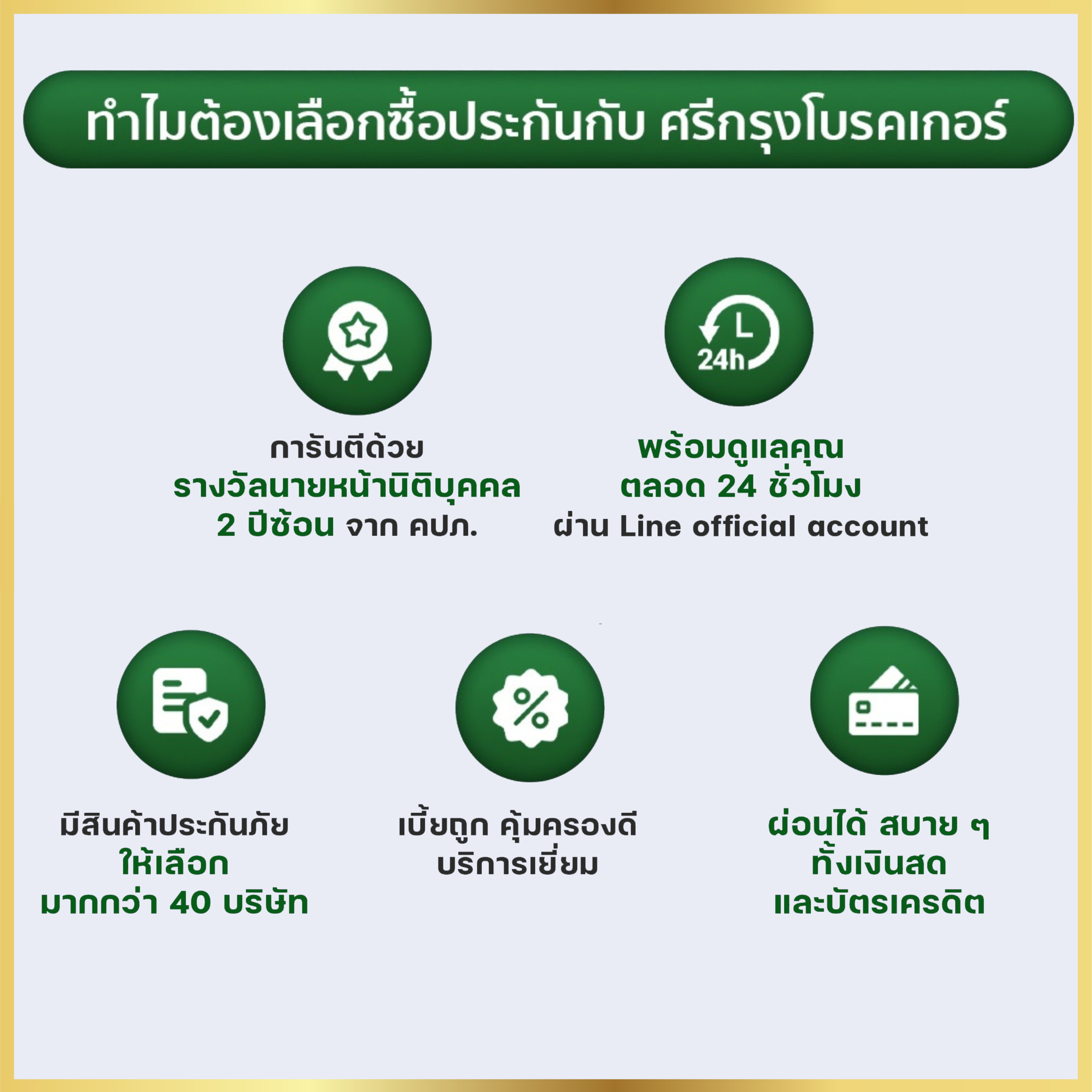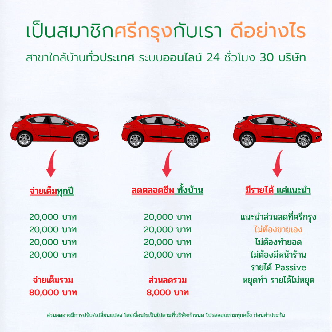 วันนี้ยังซื้อประกันรถแบบเก่า ที่ไม่ได้รับส่วนลดเลยอยู่ไหม ? เพียงสมัครสมาชิกกับศรีกรุงโบรคเกอร์ ก็สามารถซื้อประกันได้ในเรทตัวแทน โดยได้รับส่วนลดทันที เช่น เคยซื้อ 20,000 รับส่วนลด จ่าย 18,000 บาท แบบนี้จะดีกว่าไหม ? มีบริษัทประกันชั้นนำมากกว่า 40 บริษัท ให้เลือกเปรียบเทียบข้อเสนอได้ตรงความต้องการ